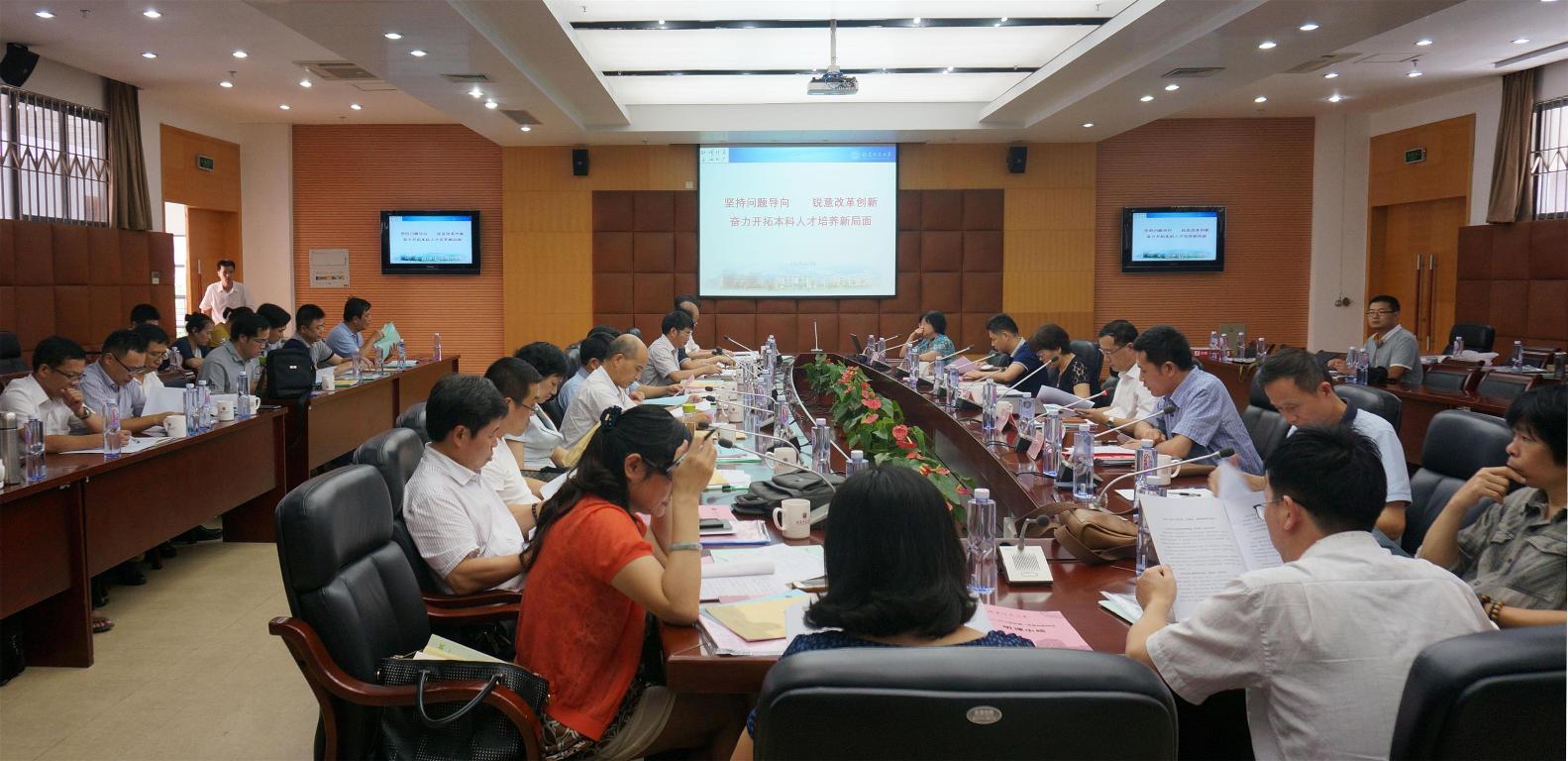 王长平校长作重要讲话,他肯定了我校在人才培养方案改革与创新方面所取得的成绩,阐释了人才培养在学校工作中的中心地位,进一步强调了教学质量保障体系的建立与运行在学校教学中的重要作用,明确提出学校人才培养机制改革的指导思想:加强基础、淡化专业、尊重选择、分类培养。他指出,人才培养机制综合改革是一项涉及长远、牵动全局的重大任务,具有复杂性、系统性、艰巨性、长期性的特点,不可一蹴而就,必须科学统筹,持续推进。希望各学院以此次人才培养机制综合改革为契机,不断完善教学管理,为广大师生员工营造宽松和谐的工作环境和学习环境。