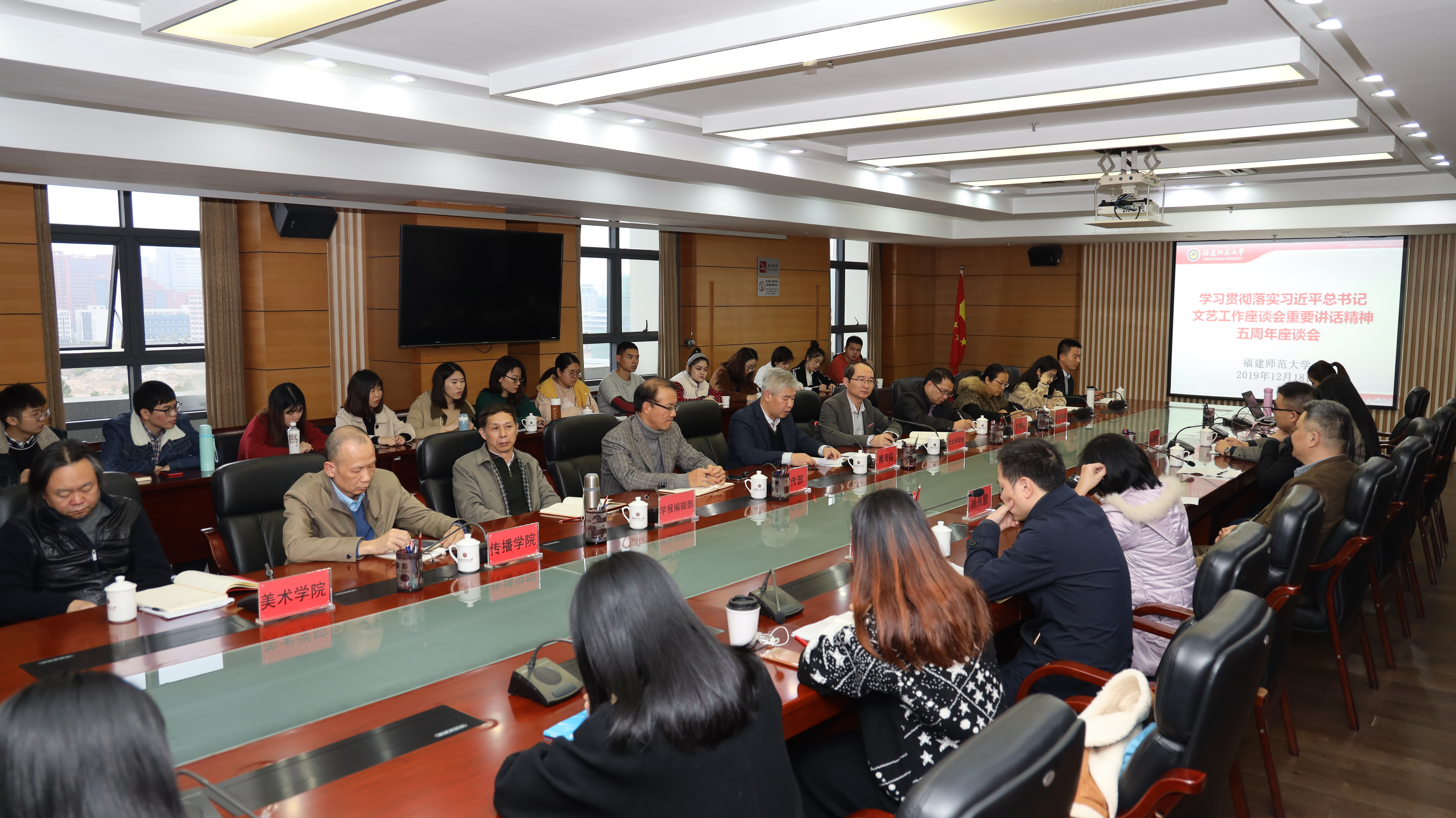 12月18日下午,座谈会在旗山校区行政楼第二会议室举办。副校长赖海榕,宣传部、社会科学处、学报编辑部有关负责人,文学院、传播学院、音乐学院、美术学院、闽台区域研究中心等单位的师生代表共40余人参加了座谈会。