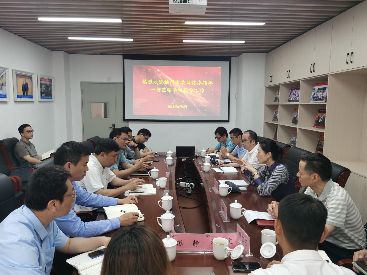 近日,福州市委宣传部副部长、网信办主任杜微带领市委网信办、闽侯县委网信办、高新区党群工作部等同志到计算机与网络空间安全学院调研交流。校网络与数据中心主任李溢明、校发展规划处副处长林伟、学院党委书记俞建群、院长许力参加了调研并参加座谈。
