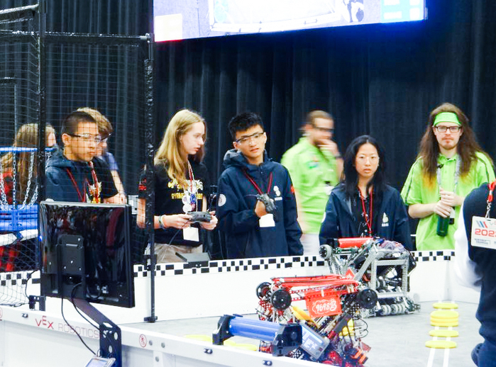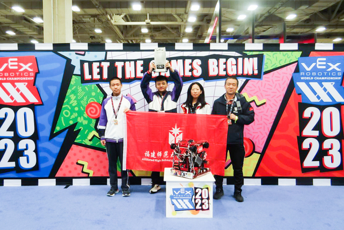 近日,“2023VEX VRC机器人世界锦标赛”在美国德克萨斯州达拉斯举行。我校附属中学派出代表队(参赛成员:高二(16)班郑敏晔、高二(8)班苏际恺、高一(17)班刘涵月,指导老师:夏洪江)赴美参赛,最终以9698B的队号,夺取了高中组Innovate(创新)分区冠军。