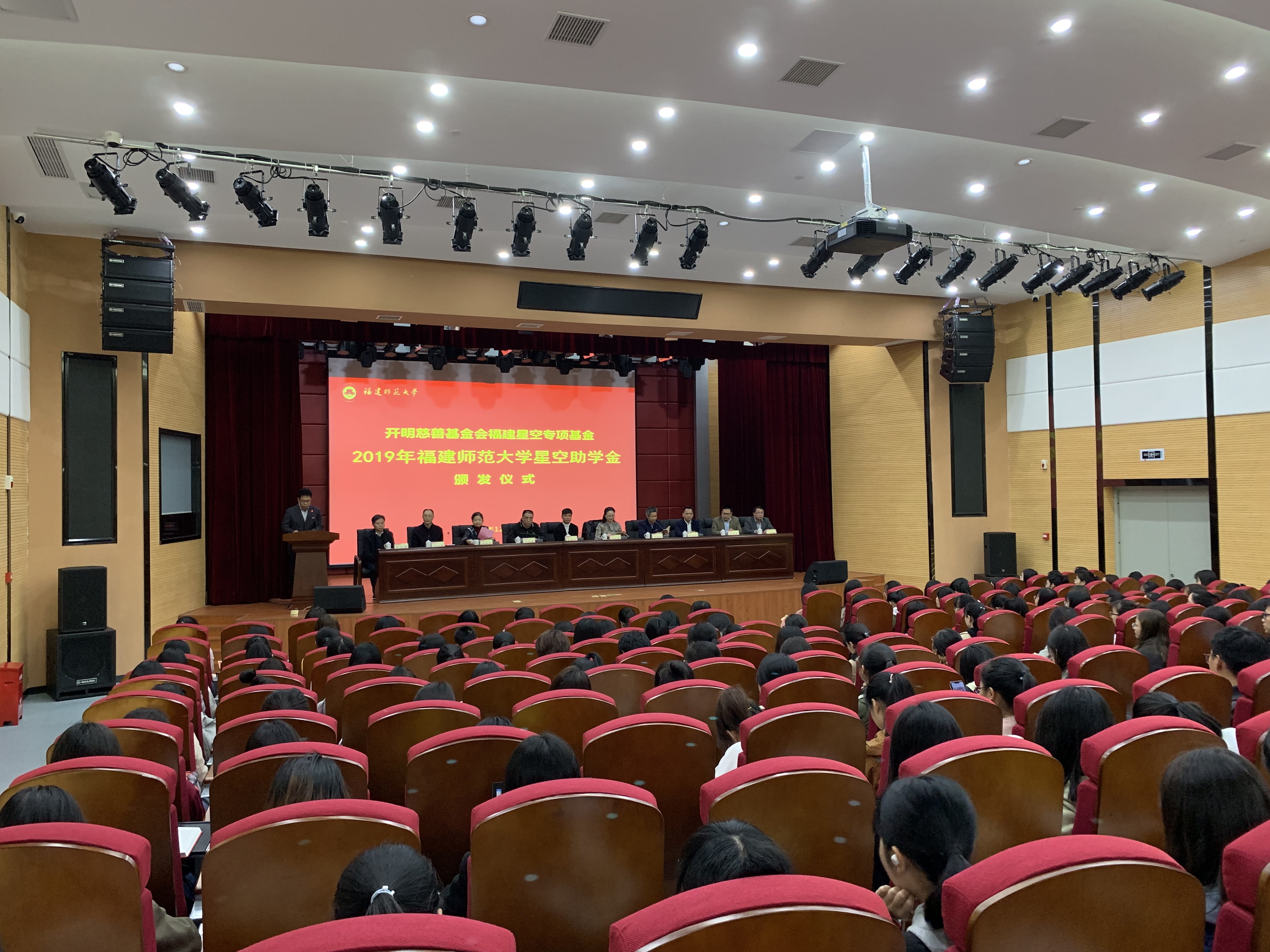12月25日下午,2019年度“福建师范大学星空助学金”颁发仪式在仓山校区科学会堂举行。开明慈善基金会副理事长、福建民进经济界联谊会会长、新思路集团有限公司董事长、福建师大创新创业导师王东平,民进省委会秘书长林龙金,副校长郑家建,统战部、校友会、学生工作部(处)、文学院负责人,师生代表和受资助学生近200人参加活动。