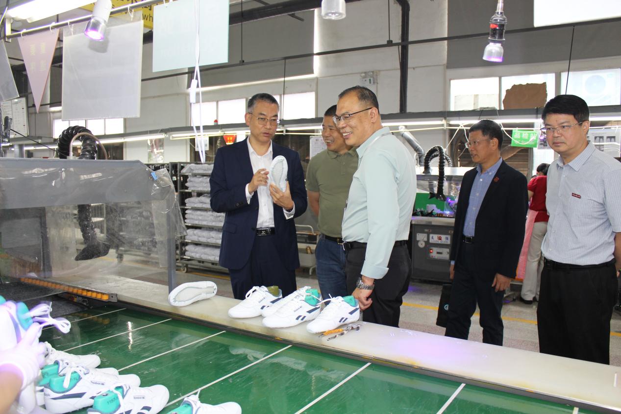 走访期间,林鲁文一行参观了莆田安健致远鞋业有限公司生产车间、实验室、展示厅等,直观了解先进科技在生产工艺、智能制造、检测中心等诸多方面的广泛应用,同时具体了解了外语专业全球化市场中的岗位需求。