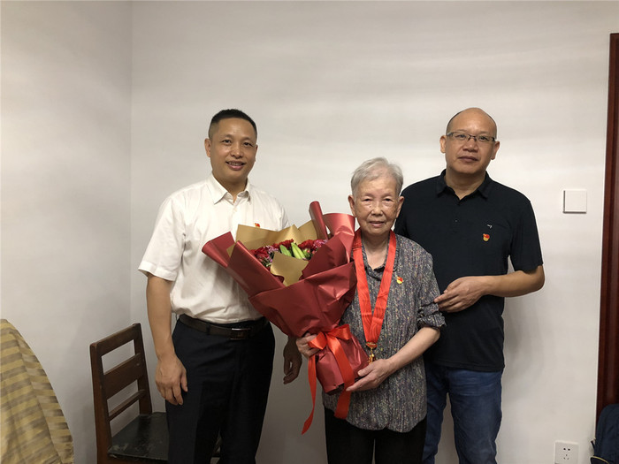 除举行颁发仪式外,校医院还开展了走访慰问老党员活动。6月28日,党委书记钟庆林、副书记谢治森走访慰问了林樺、钟颖、林赛华等3位老党员,为他们送上并佩戴“光荣在党50年”纪念章,关心询问老党员身体、生活情况,向他们致以崇高的敬意和诚挚的问候。