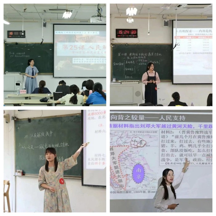 比赛分为本科生、卓越教师以及研究生三个赛道,共吸引了88位学生报名参赛。经过初、复赛遴选,共有30位选手(每个赛道各10位)进入决赛。在15分钟片段教学中,选手们精心设计课件,有效组织课堂,将历史核心素养有机融入课堂教学,充分展示历史学科素养和师范技能水平。选手们良好的教姿教态、规范的教学设计以及创新的教学构想得到了评委和观众的肯定。经过角逐,比赛共评选出一等奖4名、二等奖7名、三等奖8名。