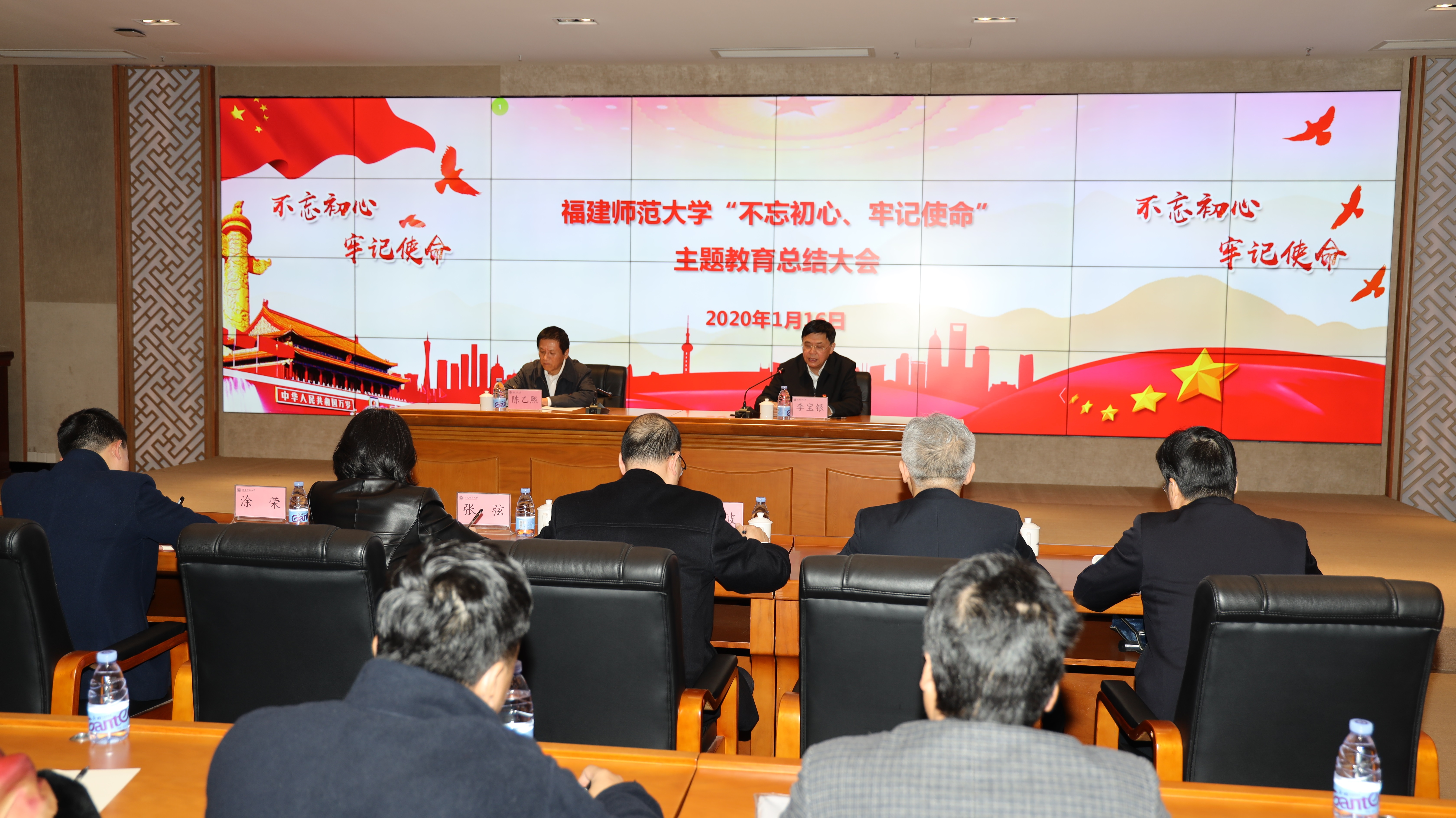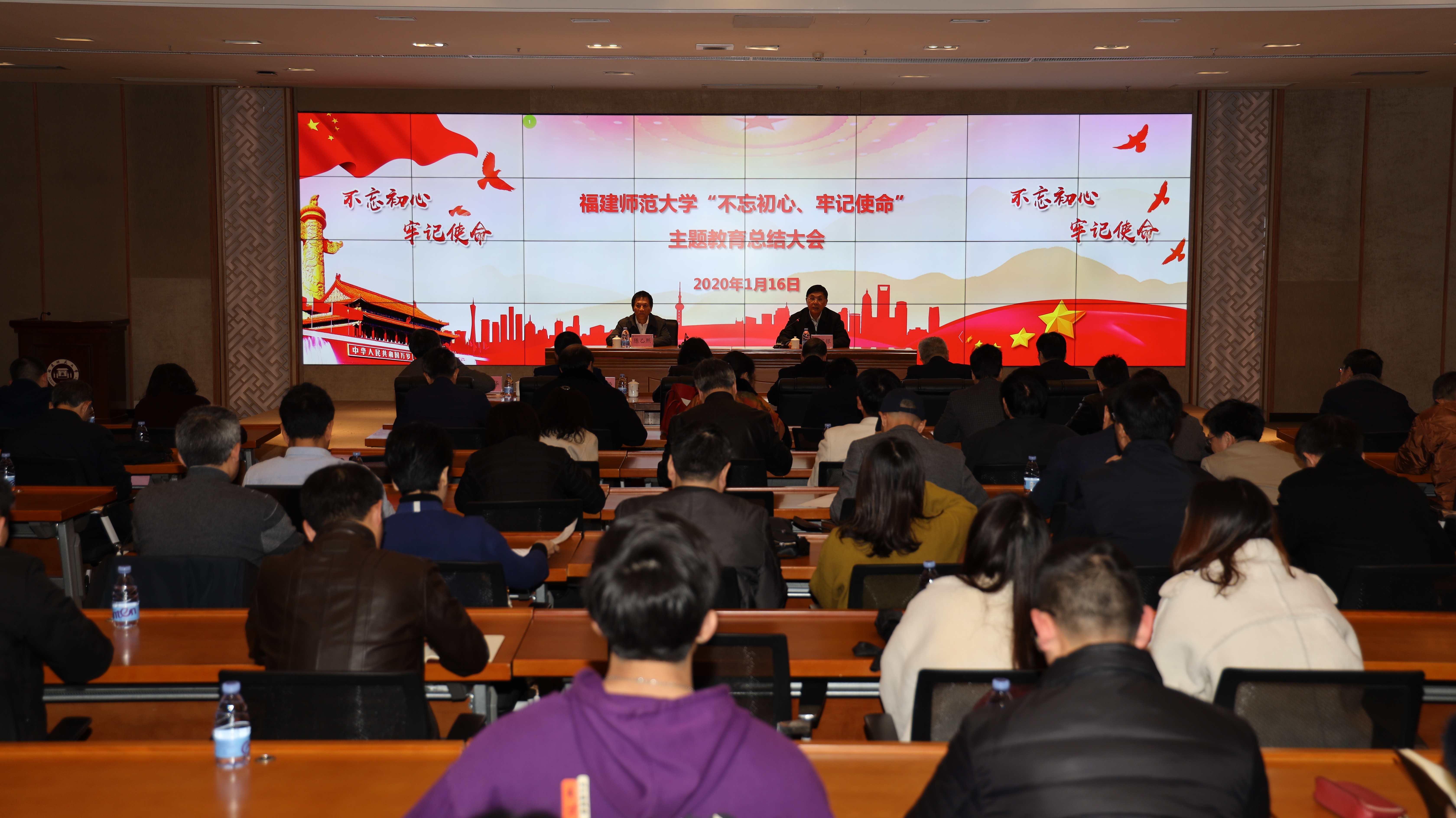 1月16日下午,我校在旗山校区宏达厅召开“不忘初心、牢记使命”主题教育总结大会。省委第十一巡回指导组组长陈乙熙、指导组成员张弦,校领导,机关各部、处、馆、室、中心负责人,各学院、福清分校、协和学院、闽南科技学院、附中、附小党政主要负责人,教授党员代表、教职工党员代表、学生党员代表参加了大会。