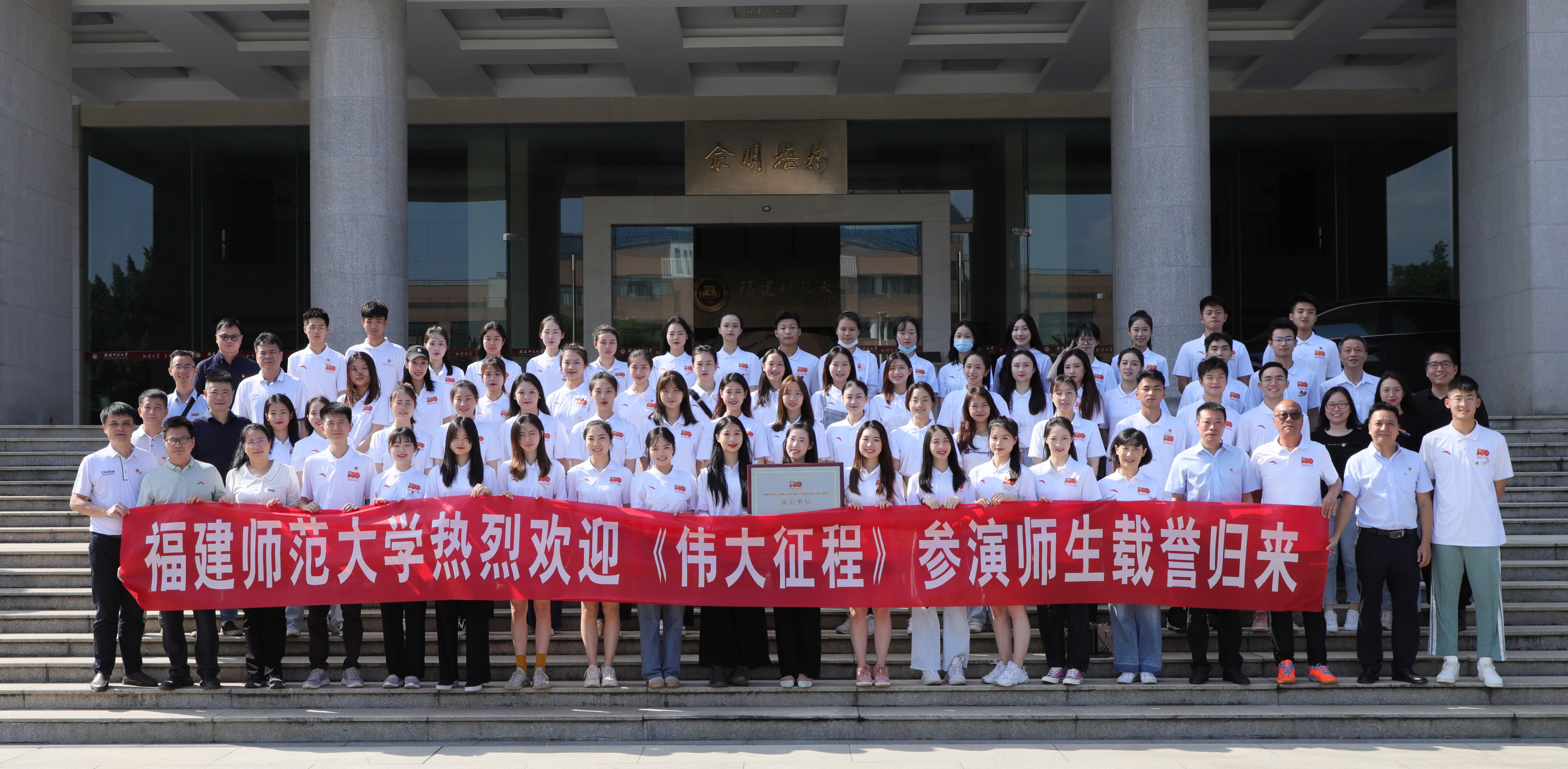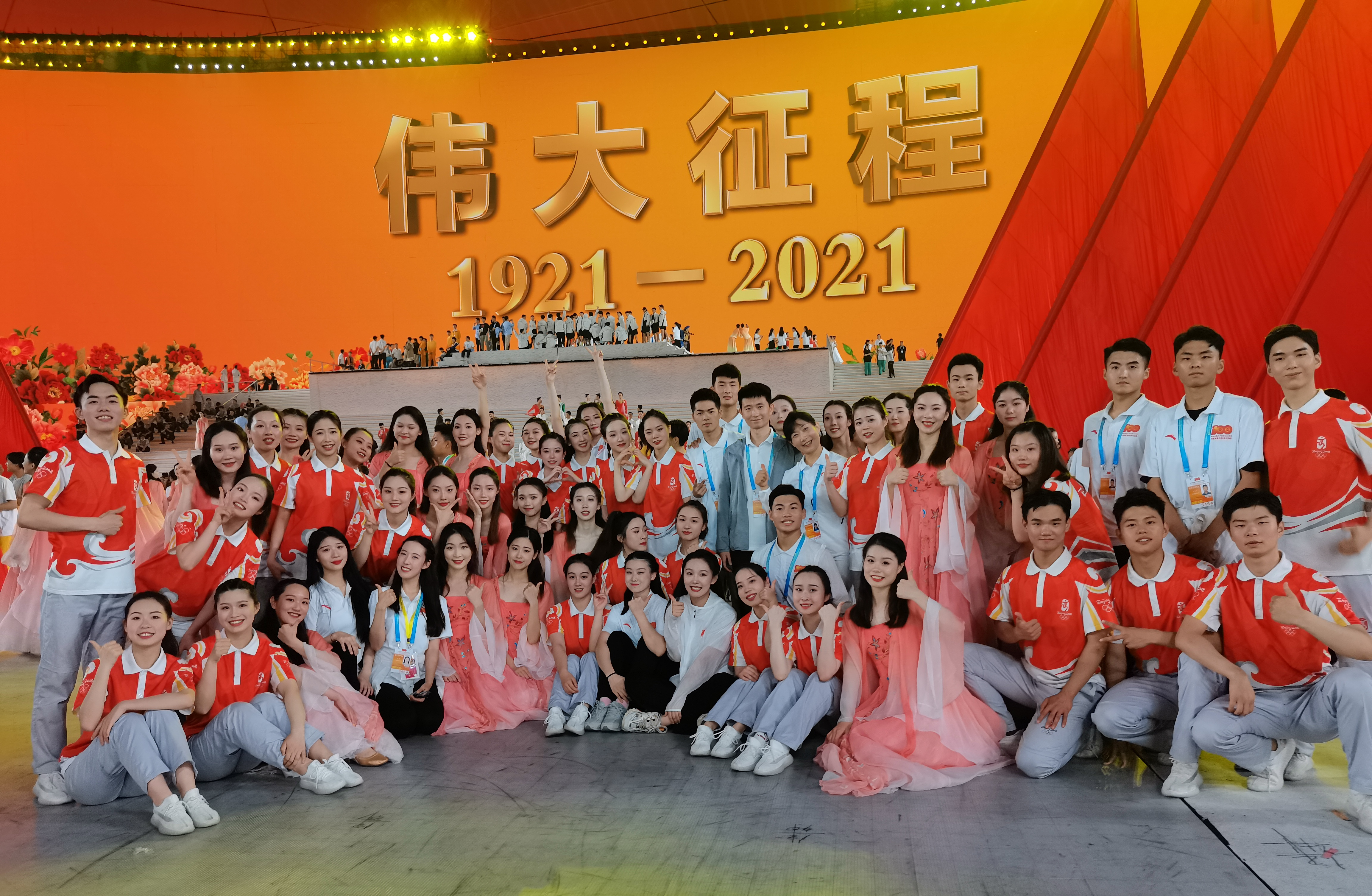 7月7日,我校在旗山校区宏达厅隆重举行庆祝中国共产党成立100周年大型文艺演出《伟大征程》参演师生表彰大会,欢迎赴京参演师生载誉归来。校领导,相关部处、音乐学院、体育科学学院、协和学院主要负责人,全体参演师生参加了大会。