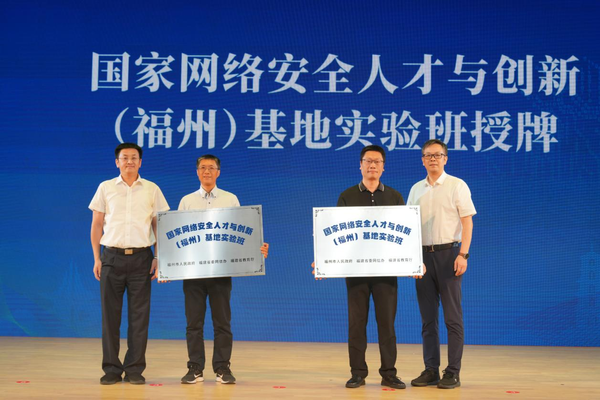 同时,学院还组织国家网络安全人才与创新(福州)基地实验班师生前往福州市文化馆演艺厅,参加2025年国家网络安全宣传周福州市活动暨网络文化季主题活动。现场,网络空间安全系主任林晖教授代表学院接受国家网络安全人才与创新(福州)基地实验班授牌。