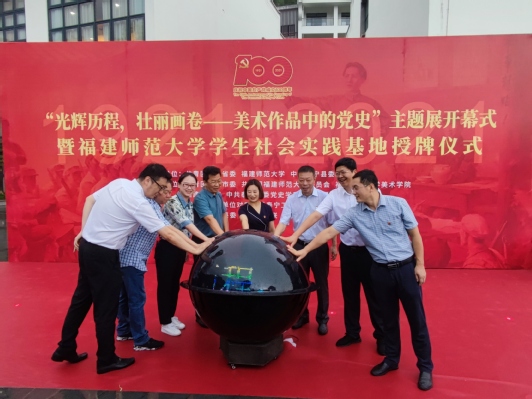 7月29日下午,“光辉历程 壮丽画卷——美术作品中的党史”主题展开幕式暨福建师范大学学生社会实践基地授牌仪式在三明市泰宁县举行。此次活动由共青团福建省委、中共泰宁县委和我校主办。共青团福建省委副书记刘安娟、三明市政协副主席陈欣、我校党委副书记李绚、共青团三明市委书记陈建秋以及泰宁县各界青年代表和我校师生等120余人参加了仪式。