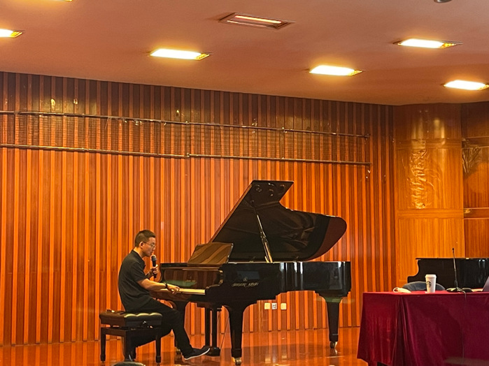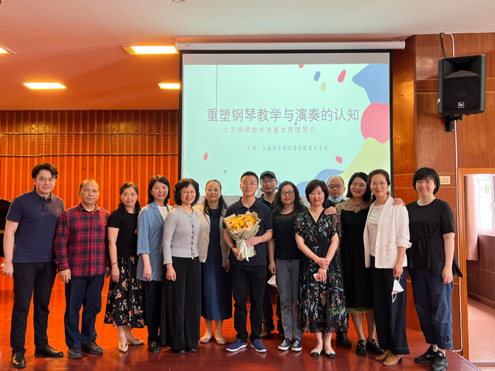 近日,音乐学院邀请上海音乐学院王庆教授作《重塑钢琴教学法与演奏的认知—六言钢琴教学法的基本原理》专题讲座。讲座由音乐学院键盘系副主任魏炜老师主持。