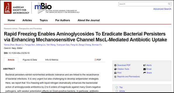 近日,我校生科院付新苗研究员领导的细菌耐药课题组,以福建师范大学为第一署名单位和主要通讯作者单位,在国际顶级生物学期刊《mBio》上在线发表了以庆大霉素为代表的氨基糖苷类抗生素“增效减毒”的研究成果。