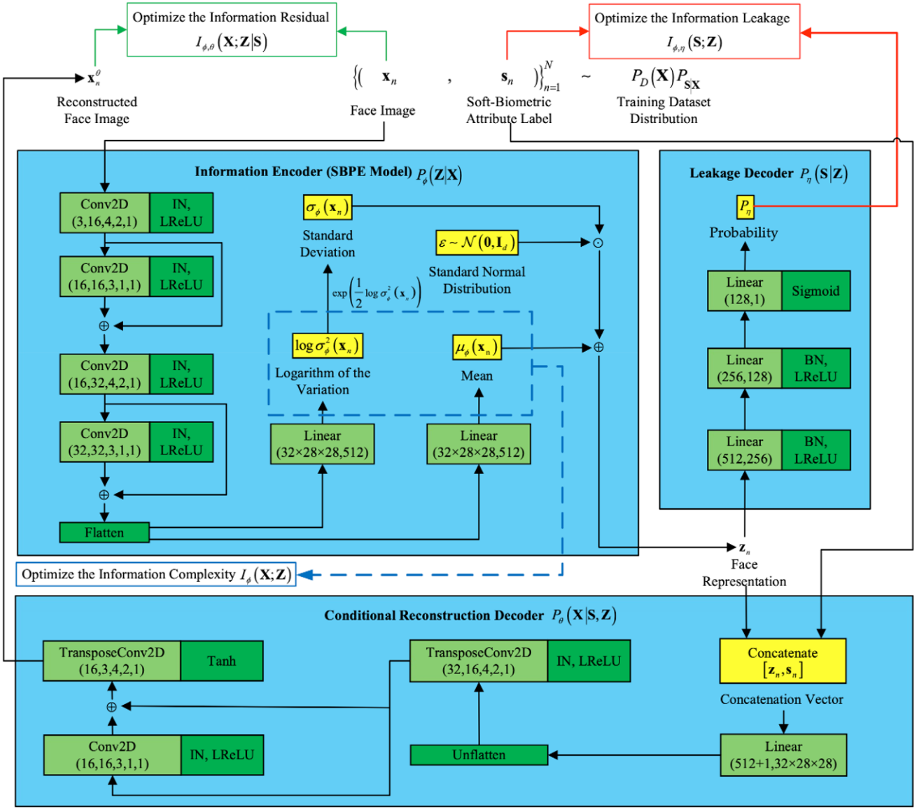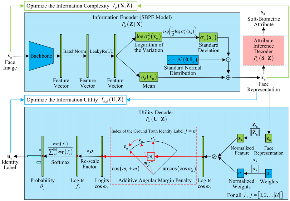 近日,福建师范大学计算机与网络空间安全学院(软件学院)姚志强教授课题组在大数据安全与隐私计算领域取得重要研究突破,提出了一种新型框架FIBNet,既保证人脸识别率达到要求,又抑制人脸表征中的隐私信息。课题组基于信息瓶颈(IB)原理,将该问题建模为表示层面的优化问题,通过变分近似方法,使用深度神经网络参数化信息编码器和效用解码器,构建了信息瓶颈目标函数的下界。为确保训练稳定性,在信息编码器中引入重参数化技巧,并在效用解码器中加入加性角度余量惩罚,从而生成具有高识别性能的面部表征。