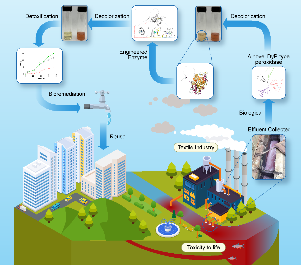 纺织印染等工业活动排放的染料废水具有高色度和强毒性,严重威胁生态环境。传统物理化学处理方法往往存在能耗高、成本大、二次污染等问题。相比之下,酶催化降解技术以高效、绿色和可再生等优势,正成为废水治理的重要发展方向。
