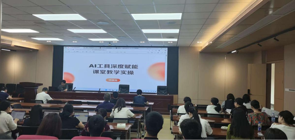 讲座中,林晓龙从“AI的发展、探索经验、实操环节、拓展延伸”四个方面,系统梳理了人工智能的发展历程,解析了AI技术的核心能力与应用边界,并结合自身实践经验,分享了AI对工作流程优化、内容创新的影响。为了让教师们更直观了解AI技术,他还聚焦文档智能排版、PPT自动生成、数字人教学演示、互动场景搭建、作业考卷智能批改等场景,通过案例演示与操作要点讲解,助力教师拓宽教学创新视野,明晰AI工具的实用价值。