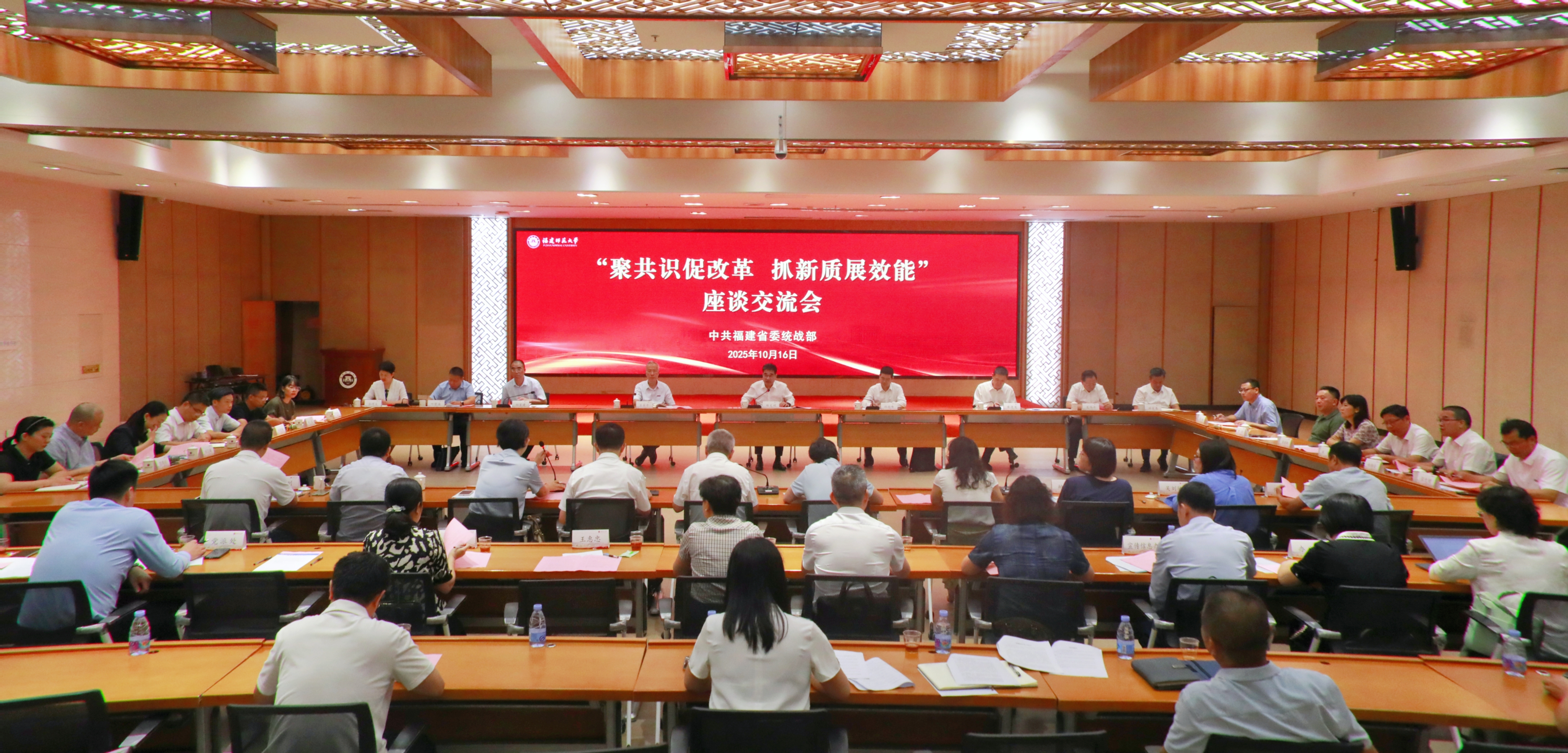 10月16日,省委统战部“聚共识促改革 抓新质展效能”座谈会在我校旗山校区召开。省委常委、统战部部长林文斌主持并讲话。省委统战部常务副部长黄进发,各民主党派省委会有关负责同志,省教育厅、科技厅、人社厅、省创新研究院等单位有关负责同志和党外专家学者及民营企业代表,我校校长郑家建、原校长王长平、校党委副书记陈晓红、副校长欧阳松应及相关同志参加。
