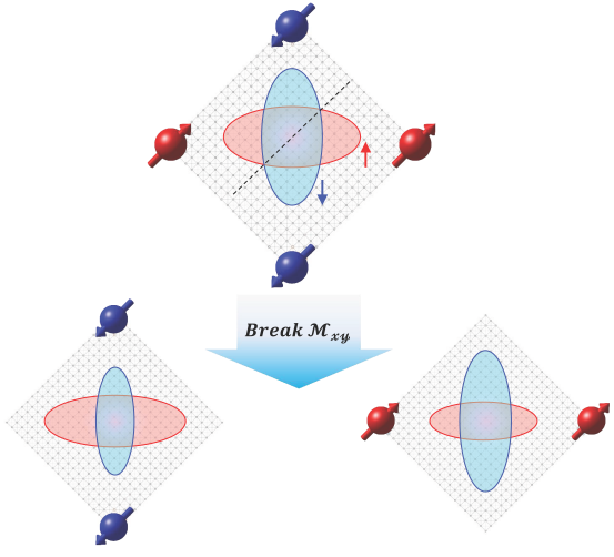 我校物理与能源学院张健敏教授、黄志高教授团队聚焦交错磁体系中自旋调控与高阶拓扑态的耦合机制,揭示了二维交错磁体中自旋选择性二阶拓扑绝缘体的形成规律。研究发现,单轴应变诱导的镜面对称性破缺可产生自旋分辨的角态,进而驱动自旋-角点锁定(spin–corner locking)机制,使体系进入角极化的二阶拓扑相。这一过程首次建立了自旋自由度与角态之间稳固的锁定关系,阐明了交错磁体中自旋有序与高阶拓扑性质的深层关联,为拓扑自旋电子学与角点电子学(cornertronics)的结合提供了新的物理途径。