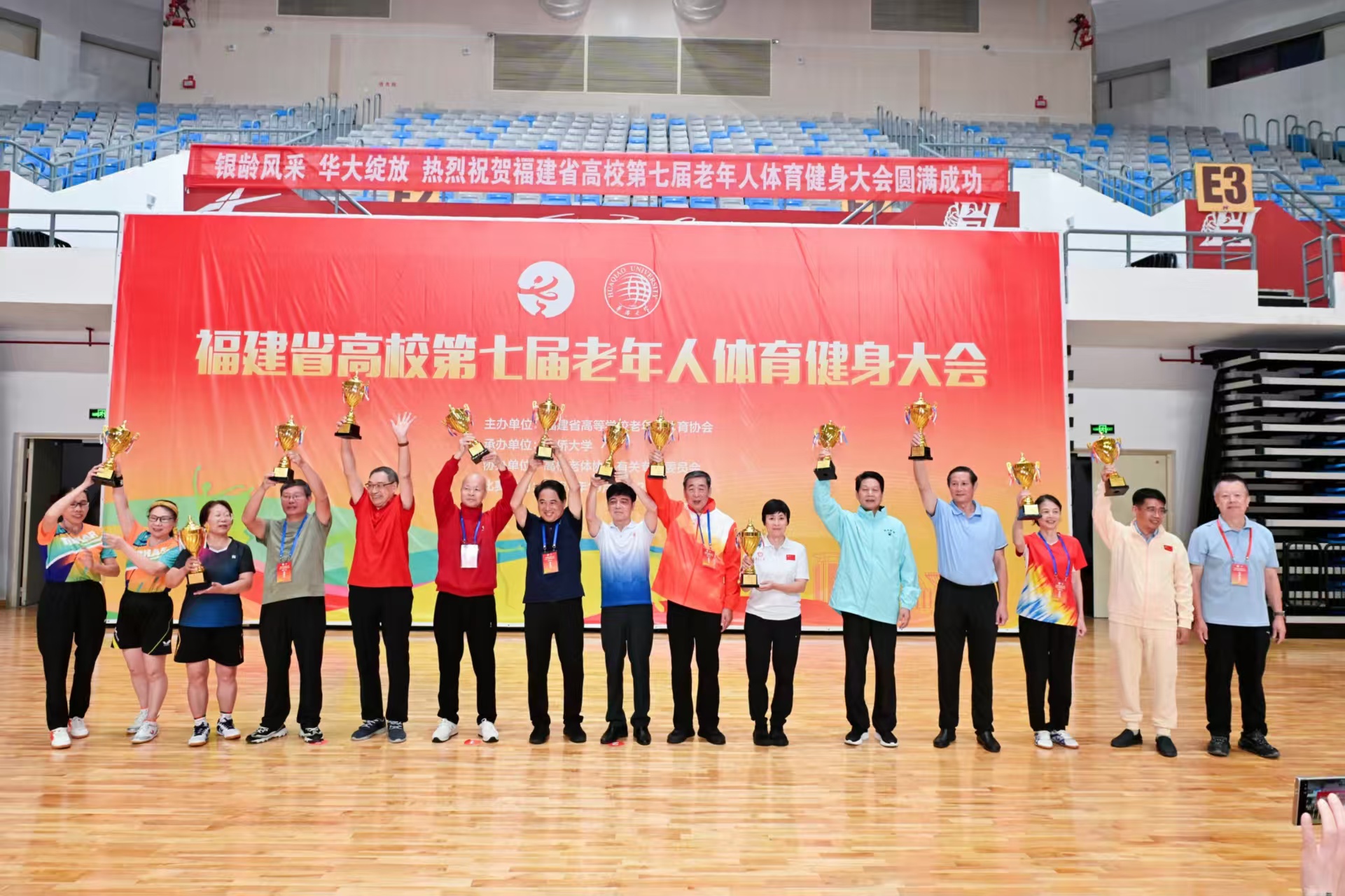 10月17日至21日,福建省高校第七届老年人体育健身大会在华侨大学举办。我校组织76名运动员参赛,经过5天的激烈比拼,夺得气排球、乒乓球、广场舞、象棋、扑克牌80分等5枚金牌,门球、柔力球、网球、地掷球、围棋等5枚银牌,并以总分优势荣获团体总分一等奖,实现运动成绩与身心健康双丰收,充分展现了我校老年人积极向上、健康乐观、老有所乐的精神风貌。