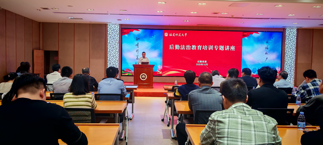 10月29日,后勤邀请我校法学院林少东副教授开展“知法、守法、用法 共建美丽校园”专题讲座。后勤全体党员、重要环节关键岗位工作人员及校内第三方服务主要负责人、部分骨干人员参加,讲座由后勤党委书记钟庆林主持。