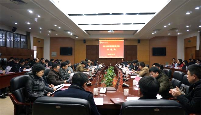 会议于1月13日下午在旗山校区第十会议室举行,会议主题是研讨推进我校大学生创新创业教育改革有关工作。李敏副校长,教师教育学院,各学院分管教学领导、学科教学论负责人、教学秘书、教务员以及教务处全体人员等近百人参加了会议。