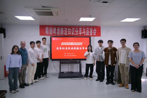 活动现场,张小闽结合自身行业前沿技术系统讲解了从原料特性到酿造工艺的核心知识,并与师生互动交流,现场气氛热烈。