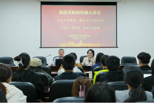 11月3日上午,由福建省新文科教育研究中心、我校传播学院马克思主义与当代媒介研究中心联合主办的“福建省新闻传播大讲堂”在传播学院五楼会议室举行。南京大学社会学院博导、教育部长江学者特聘教授、国务院学科评议组成员翟学伟教授应邀开展题为“关系向度理论:理论与文化的关系”的讲座。讲座由社科处处长张梅教授主持,传播学院、文化旅游与公共管理学院师生代表到场学习。