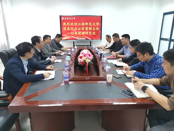 11月17日,江西师范大学信息化办公室主任雷刚、副主任张而军带队来校调研交流。网络与数据中心主任辛承南、副主任范新民及相关科室负责人参加了交流座谈。座谈会上,双方围绕“十五五”信息化建设规划、信息化项目管理、算力平台建设、校园基础网络建设、数据治理等主题展开交流,并就信息化工作中的重点、难点问题进行了深入探讨。(网络与数据中心)