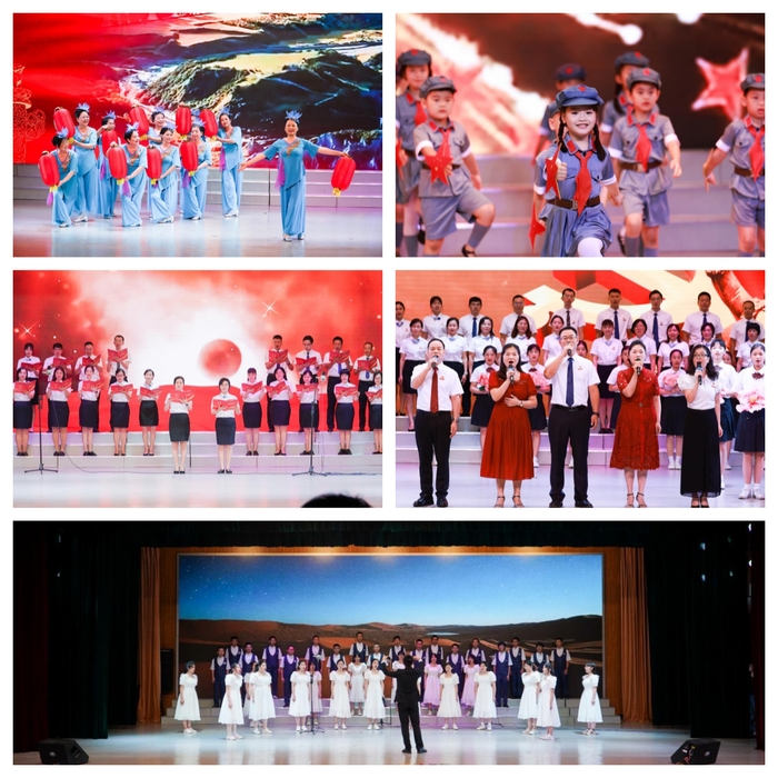 附中师生、离退休教师、教职工子女以丰富多彩的形式讴歌党的丰功伟绩,为党的102岁生日献礼。离退休舞蹈队、教职工子女分别带来舞蹈表演《火火的中国年》《红星闪闪》,展示出附中人代代相承的阳光心态和向上风貌;高中部合唱团的合唱《玉门关》、初中部合唱团及党员教师代表的合唱《在灿烂阳光下》及2023年“两优一先”党员教师的原创诗歌朗诵《当我》,歌颂了共产党人的奋斗精神、奏响了附中师生实干的强音。活动在全场大合唱《没有共产党就没有新中国》中落下帷幕。