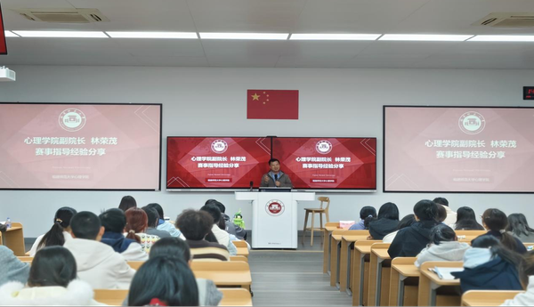 11月19日,心理学院在知明楼举办创新创业赛事师生双选会。学院党委副书记苏杭、副院长林荣茂以及部分师生代表参加活动。苏杭强调,活动旨在为师生搭建合作交流的桥梁,希望全体师生积极参与各类赛事,实现科研成果遍地开花。林荣茂结合心理学院优秀项目,从项目选题、团队合作、学术诚信等角度分享赛事指导经验。学生代表依次分享参赛经验并纳新。现场,师生交流热烈。(心理学院)