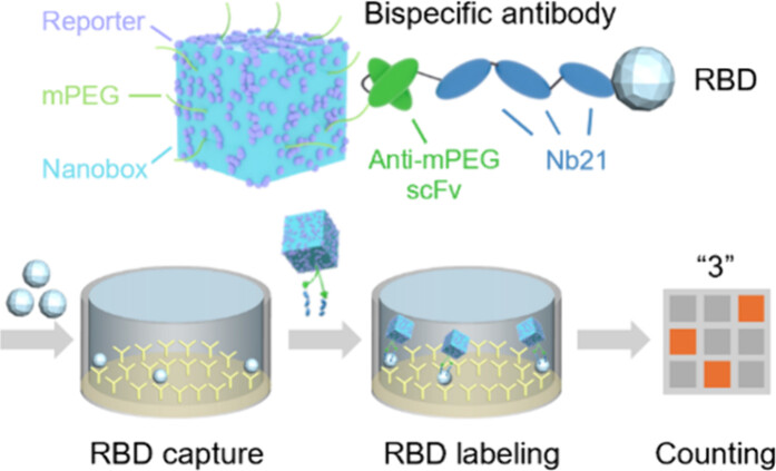 为解决这一技术瓶颈,我校王静研究员团队开发了一种基于双特异性抗体片段(BsAb)的定向固定化新策略,显著提升了SERS纳米标签的稳定性和抗原结合效率。双特异性抗体片段α213可同时识别SARS-CoV-2受体结合域(RBD)与甲氧基聚乙二醇(mPEG),实现了其在等离子纳米结构上的可控固定。将该技术集成于自主研发的数字SERS检测平台后,实现了对血浆中SARS-CoV-2 RBD蛋白的高灵敏、高特异性检测,检测限达3.97 ng/mL,在检测速度、灵敏度和多重检测能力方面均优于传统方法。该研究不仅建立了一套系统的抗体片段固定与功能表征框架,还为下一代SERS生物传感器的设计与优化提供了可靠策略,具有广泛的生物医学应用前景。