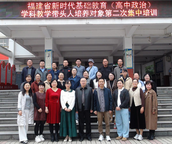 11月14日至20日,由福建省教育厅主办,我校马克思主义学院承办,南平市教师进修学院、建瓯市第二中学协办的福建省新时代基础教育(高中政治)学科教学带头人培养对象第二次集中培训在南平建瓯举办。