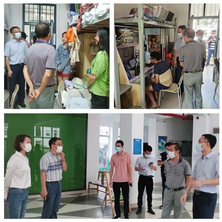 近日,旅游学院领导伍世代、陈晓斌、黄志斌、林明水深入李苑4号宿舍楼,对线上课堂教学、学生宿舍进行全面的走访检查。
