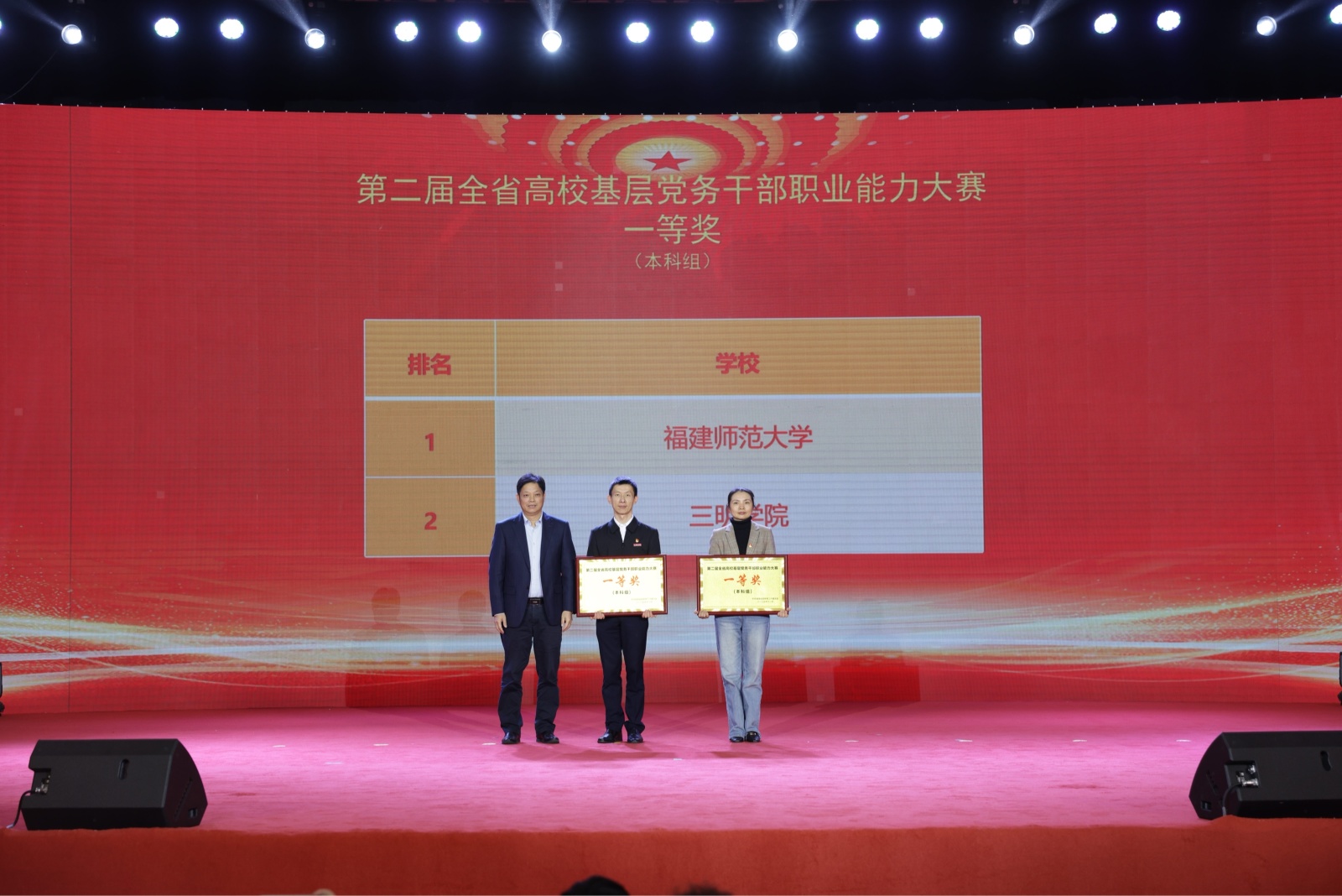 大赛设本科组和高职高专组,分3个阶段进行,涵盖“知识测试”“主题党日策划”“微党课”“谈心谈话”等4个赛项,共有85所高校的200多名基层党务干部参赛。经过激烈角逐,我校和三明学院获本科组团体一等奖。