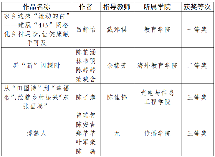 近日,由省农业农村厅、省网信办、省教育厅、团省委联合主办的福建省“新农人”风采展示活动暨“我为家乡代言”大学生短视频创作大赛评选结果公布。我校获评优秀组织奖,参赛作品获一等奖1项、二等奖1项、三等奖2项。据悉,大赛以“青春扎根乡土,新农人筑梦田野”为主题,共评选出一等奖5名、二等奖8名、三等奖13名,5所高校荣获“优秀组织奖”。我校高度重视、广泛动员,组织学生深入八闽乡村挖掘创作素材,用镜头捕捉家乡变迁,鼓励学生在实践中锤炼本领、在比赛中展现风采。(校团委)