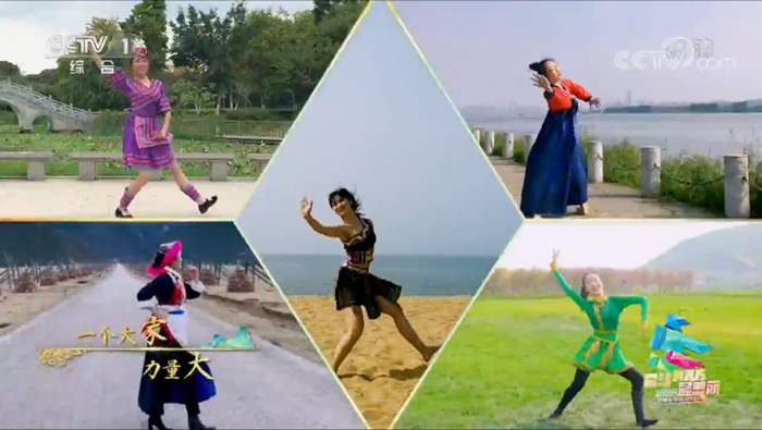 在整场共14个节目中,我校音乐学院2018级舞蹈专业研究生陈静同学在第5个节目《中华民族一家亲》中代表福建青年出镜表演,与其他民族同学共舞。她身着畲族舞蹈服装,优雅灵动,热情洋溢,淋漓尽致地演绎了一段精彩的舞蹈。此次表演将传统舞蹈语汇与创新艺术手段相结合,完美地展现了中国新时代各族青年的爱国情怀和团结奋进的精神。
