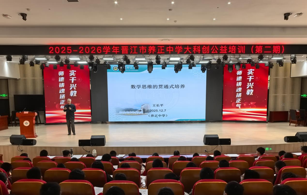 12月7日上午,由我校数学与统计学院和晋江市养正中学联合举办的大科创公益培训(第二期)在晋江开班。我校原校长王长平教授、数学与统计学院党委副书记王尚鹏、副院长柯品惠及学院相关负责人受邀出席。养正中学党委书记、校长王宽购,党委副书记林胜利,以及500余名师生共同参与活动。仪式由养正中学校长助理吴聪能主持。