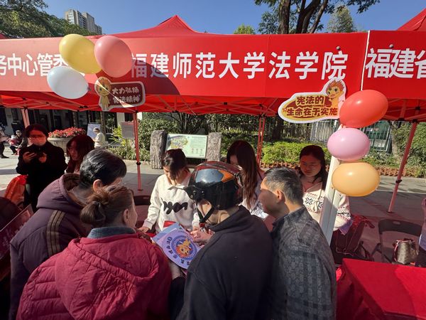 在校地协同方面,12月5日,法学院协同闽侯法院、福州铁路运输检察院和共建律所,启动法学院首届法律文化节。学生走进法院观摩庭审、开展模拟法庭;法律咨询与援助中心在茶亭公园等地设立“普法集市”,以游戏互动形式向市民普及法律知识。学生普法情景剧《调解室里的烟火气》在闽侯县“宪法宣传周”启动仪式演出。