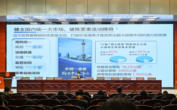 报告会上,杨林香教授紧紧围绕学习贯彻习近平总书记在党的二十届四中全会上重要讲话精神和《中共中央关于制定国民经济和社会发展第十五个五年规划的建议》,从深刻认识把握党的二十届四中全会的重大意义,准确把握“十五五”时期的重要地位,深刻领会“十五五”时期经济社会发展的指导方针与主要目标、战略任务与重大举措,坚持党的全面领导,凝聚起推进中国式现代化的磅礴力量等五个方面进行系统梳理与解读。