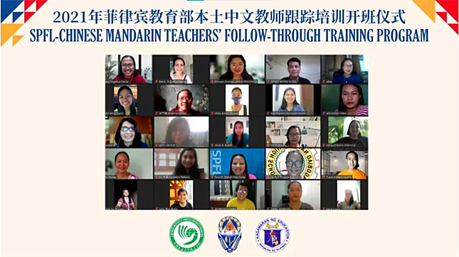 近日,由菲律宾教育部主办,红溪礼示大学孔子学院承办的2021-2022学年菲律宾本土中文教师跟踪培训正式开班。菲律宾教育部中等教育司司长JOCELYN ANDAYA、特殊语言项目官员RIZA C. GUSANO、红溪礼示大学副校长ENGR. JOSE MACAPAGAL JR.、我校海外教育学院院长姜兴山、红溪礼示大学孔子学院中方院长许雷、外方院长裴刚,以及来自菲律宾各区域70多所中学的近160名本土中文教师线上参加了开班仪式。