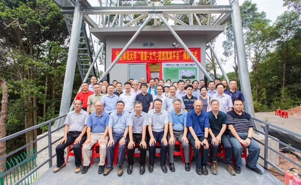 仪式上,陈镜明介绍了观测平台基本建设情况,于贵瑞、龚健雅、戴永久、朱彤、陈镜明共同为“福建师范大学通量—大气—遥感观测平台”揭牌。与会人员共同参观了观测平台。