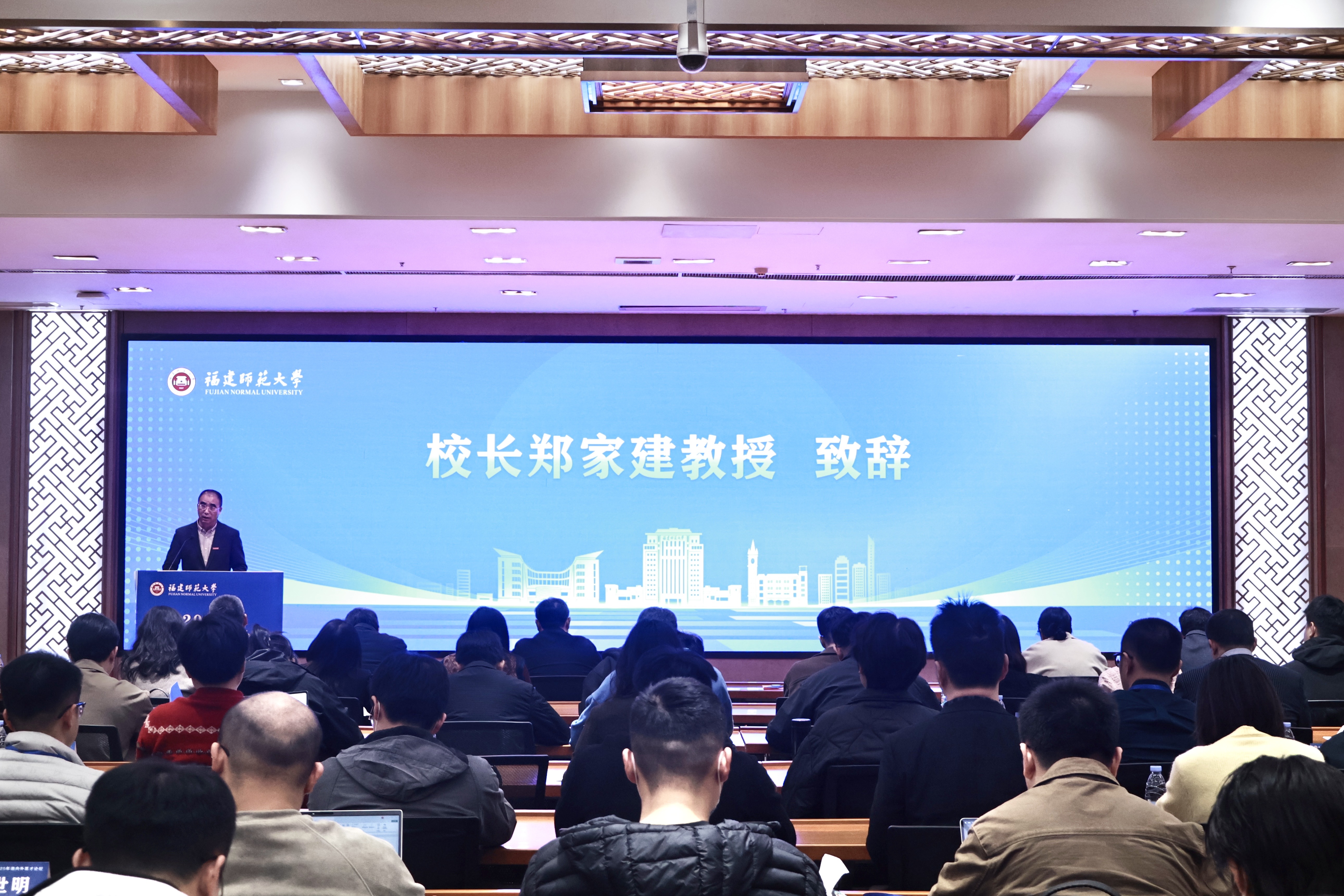 郑家建代表学校向与会专家、学者的到来表示热烈欢迎。他以“温度”为主线,深情阐述了福建师大的三大特质,全面介绍了学校的沿革发展和办学情况。一是有历史温度,学校历经118年的传承发展,始终坚守“知明行笃,立诚致广”的校训精神,历史积淀深厚,文脉绵延流长;二是有人文温度,叶圣陶、林兰英等大师先贤曾在学校执鞭杏坛,“先生之风”延续至今,大师巨匠们以渊博学识和人格魅力,奠定了学校为人师表的优良传统;三是有时代温度,学校始终呼应国家需要,从投身于研制“庆大霉素”等关系国计民生的基础研究到开创两岸合编教材先河等服务国家战略的关键举措,持续展现担当与创新活力。他强调,福建师大珍视每位青年学者的加入,会努力为大家提供“真平台”“实支持”“暖保障”和“新可能”,希望海内外优秀青年学者加盟福建师大,共谱学校事业发展新华章。