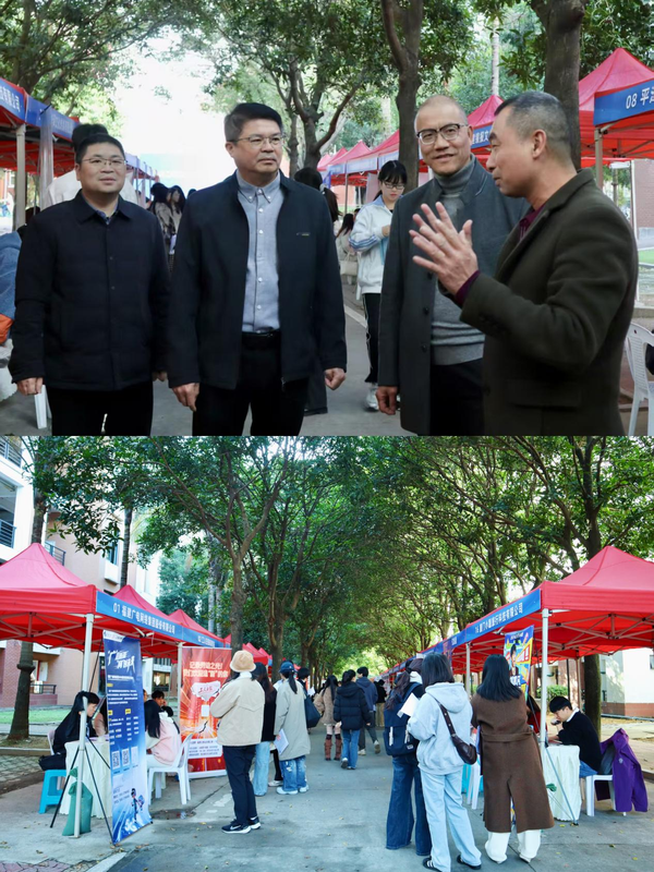 12月26日下午,传播学院2025年就业实习双选会在星雨剧场前举行。校学生工作部副部长吴志锋,传播学院领导郑文灿、谢宗贵、林子鸿、连水兴,辅导员及2026届毕业生参与活动。