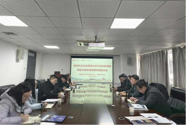 1月8日,北京师范大学宁德实验学校招聘对接座谈会在我校物理与能源学院会议室举行。北京师范大学宁德实验学校校长孙定国、我校学生工作部副部长吴志锋、物理与能源学院党委副书记阮学旺,教育学院党委副书记赵碧山、数学与统计学院党委副书记王尚鹏,以及相关学院毕业班辅导员参加会议。