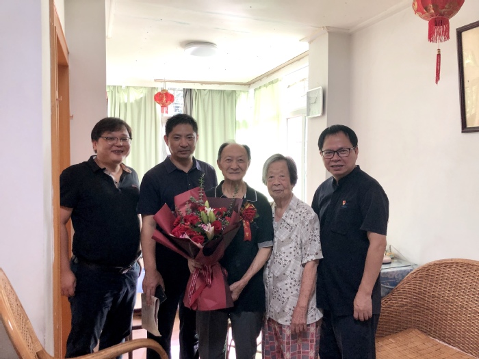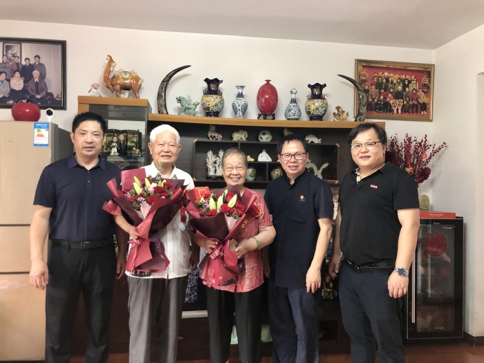 10月14日上午,教育学部常务副部长林伟川、副部长余培雄、党委副书记黄锦生等一行前往93岁老寿星李明德教授,钻石婚庄明水、黄金珠夫妇家中,为他们献上鲜花,佩戴胸花,表达师生的牵挂和祝福。学部领导深切关怀老同志的生活和身体健康情况,与他们话家常,并向老同志们汇报学部发展近况,认真听取他们对学部发展的建议。