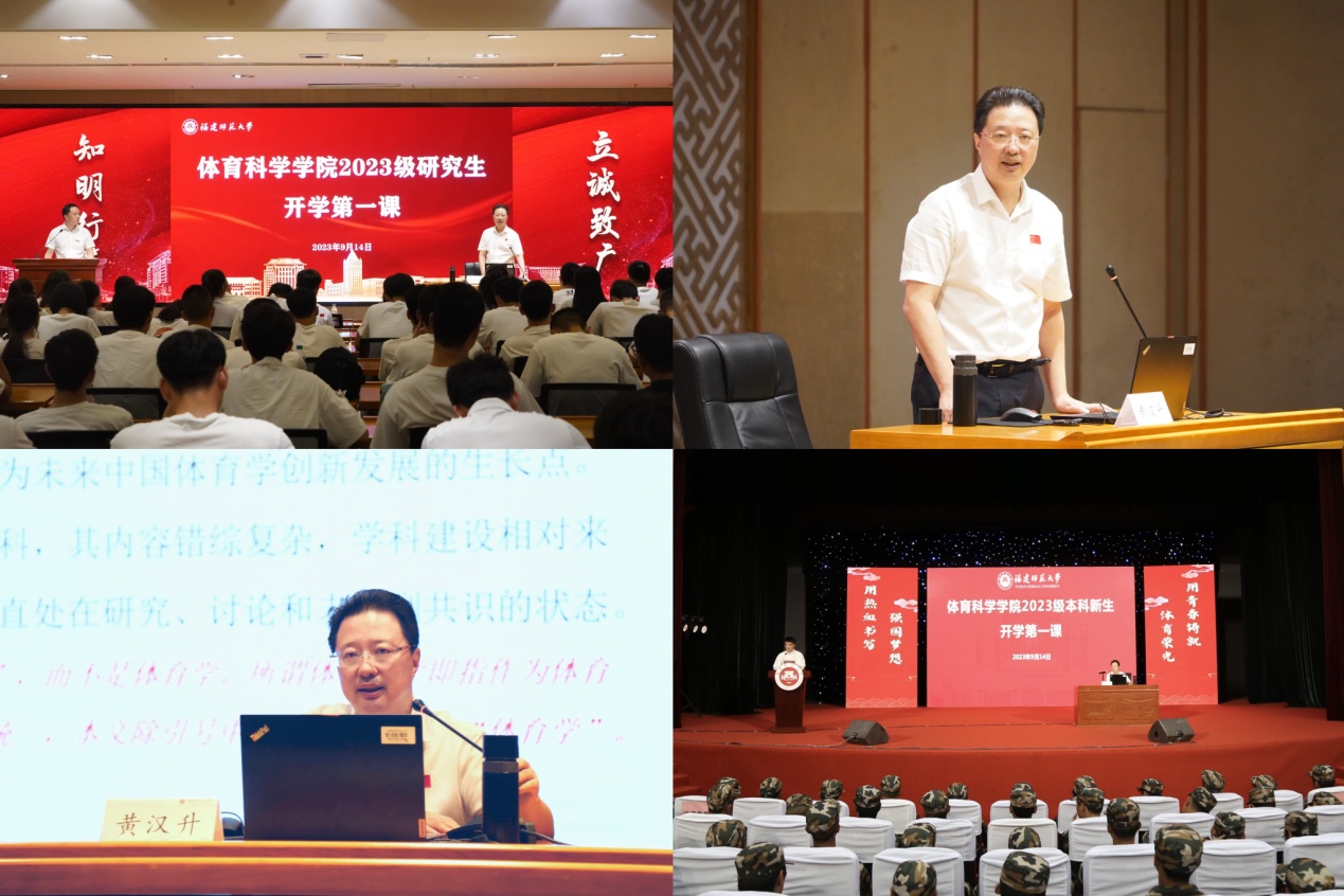 近日,国务院学位委员会学科发展战略咨询委员会委员,我校原党委书记、校长,博士生导师黄汉升教授,分别在旗山校区宏达厅、学术大会堂为体育科学学院2023级研究生、本科生新生讲授“开学第一课”。