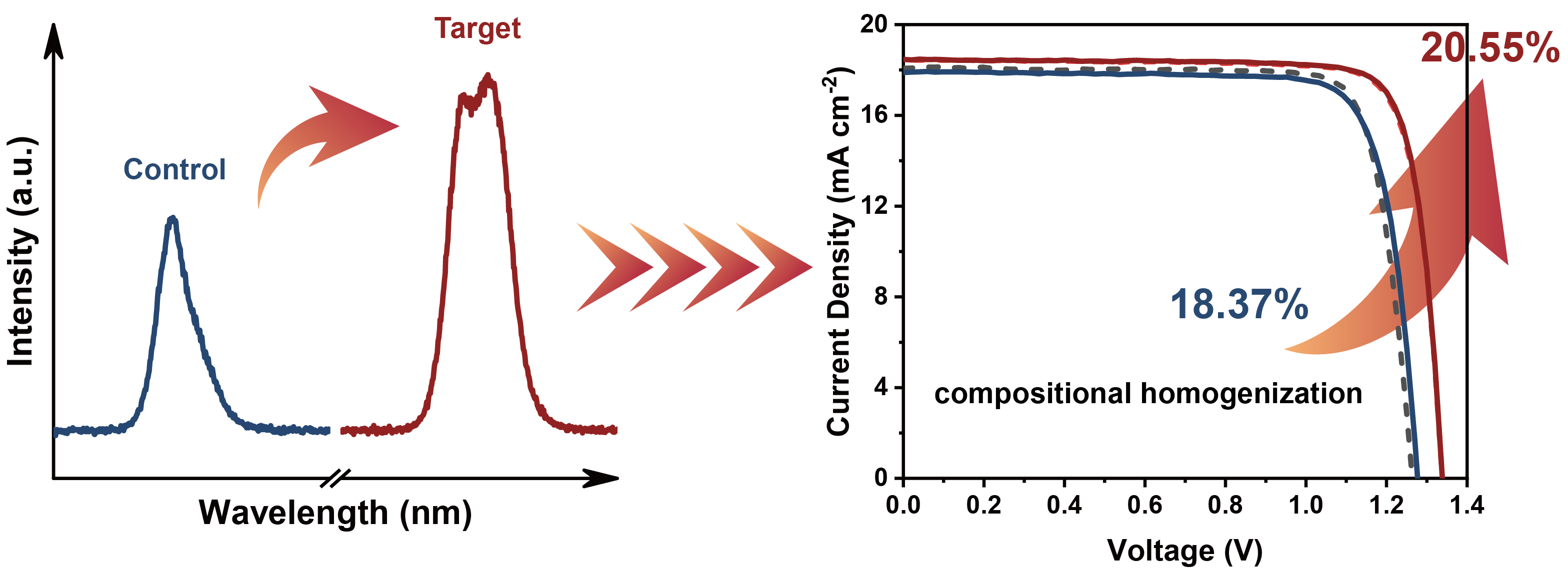 宽带隙钙钛矿是突破单结钙钛矿光伏器件效率极限和构筑高性能串联光伏器件的关键材料。然而,随着带隙的增加,溴含量的增多会引起严重的结晶动力学失配问题,直接导致了钙钛矿薄膜内不均匀的卤素相分布和大量体相缺陷产生,成为制约器件效率与稳定性的主要原因。