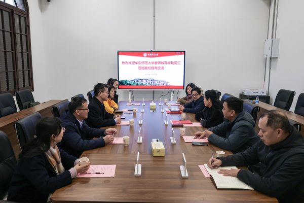 1月22日,华东师范大学教师教育学院院长代蕊华、副院长俞虹一行10人到教师教育学院座谈交流。校党委副书记陈晓红,教师教育学院党委书记陈祖棋、院长吴文哲、副院长郭秋荣参加座谈会。我校驻华东师范大学挂职干部、华东师范大学教师教育学院副院长邱海锋陪同交流。