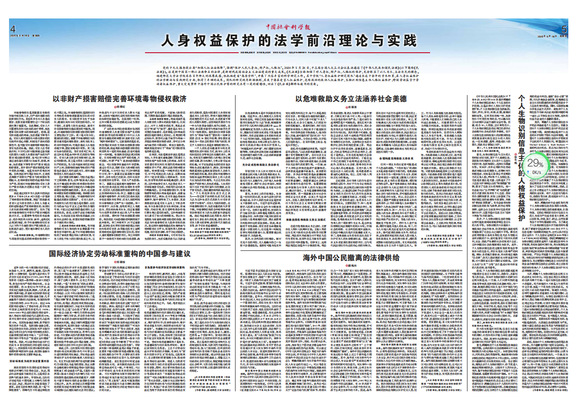 近日,《中国社会科学报》以“人身权益保护的法学前沿理论与实践”为题,专版报道了我校法学院教师深度解读《中华人民共和国民法典》的研究成果。法学院“人身权益保护研究团队”从潜在受害人权益保护、危难救助的救助人权益保护、个人生物识别信息主体人格权益保护、跨国劳动监管中劳动者权益保护以及海外中国公民权益保护等角度出发,用深厚的学术积淀和新颖独到、富有前瞻的研究视角,回应了《民法典》解释与适用的需要。(法学院)