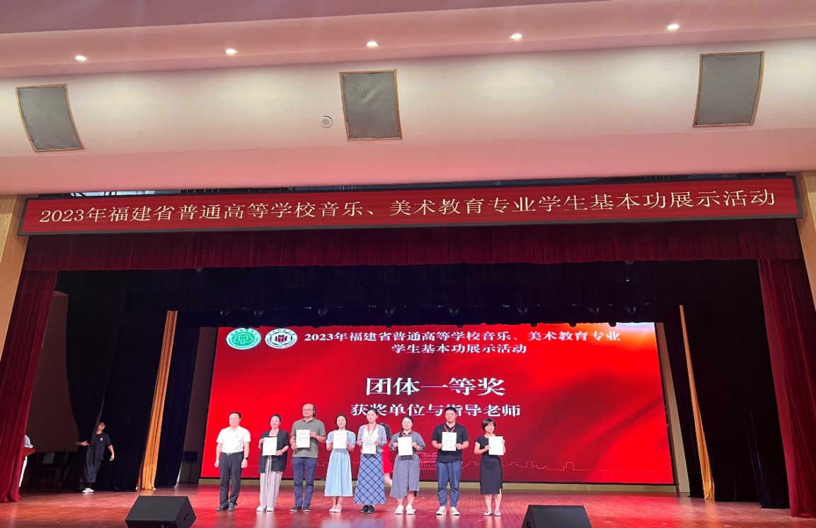 近日,由福建省教育厅主办的2023年福建省普通高等学校音乐教育、美术教育专业学生基本功展示活动在闽南师范大学举行。美术学院师生团队获得美术教育专业本科学生基本功展示团体一等奖(第1名);个人全能一等奖1项、二等奖2项;“书法”单项奖2项、“手工”单项奖3项、“自选项目”单项奖3项、“微课展示”单项奖3项、“团体一等奖”指导教师奖1项、“个人全能一等奖”指导教师奖1项、“个人全能奖”指导教师奖2项。