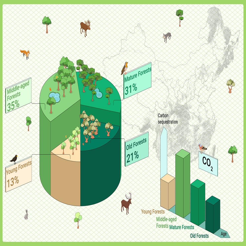 相关成果以China’s current forest age structure will lead to weakened carbon sinks in the near future为题,发表在期刊《The Innovation》。