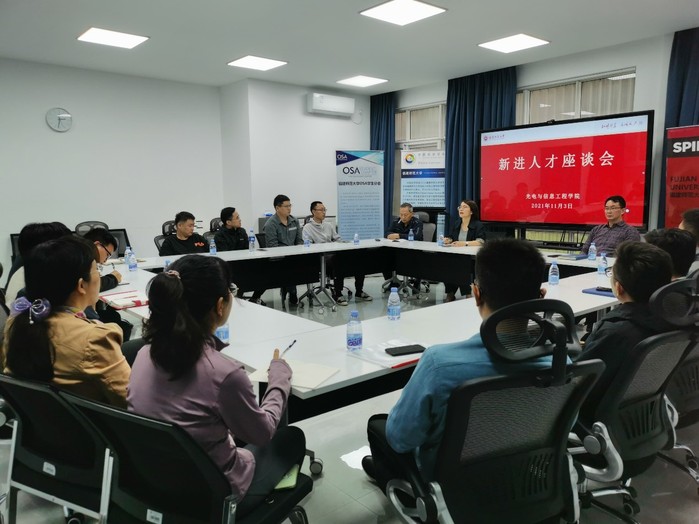 11月3日,光电与信息工程学院在理工楼109召开新进人才座谈会。院党委书记侯建雄,院务委员朱小钦,学院关工委主任、校督导团邱怡申,近几年新进人才教师代表、教学科研办公室、党委办公室负责人等参加了座谈会。
