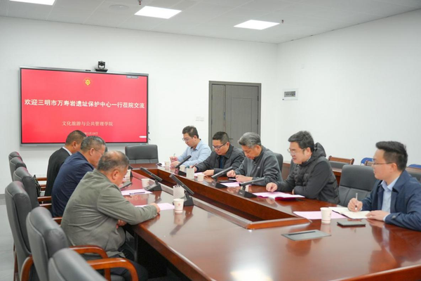 3月19日下午,三明市文化和旅游局党组成员、三明市万寿岩遗址保护中心(三明市万寿岩遗址博物馆)主任(馆长)邓天华,副主任(副馆长)朱凯、文保科科长邓小灵一行到文化旅游与公共管理学院交流校地合作。学院党委书记林峰森、院长谢宏忠、党委副书记赖建辉、院务委员储德平等参加座谈。